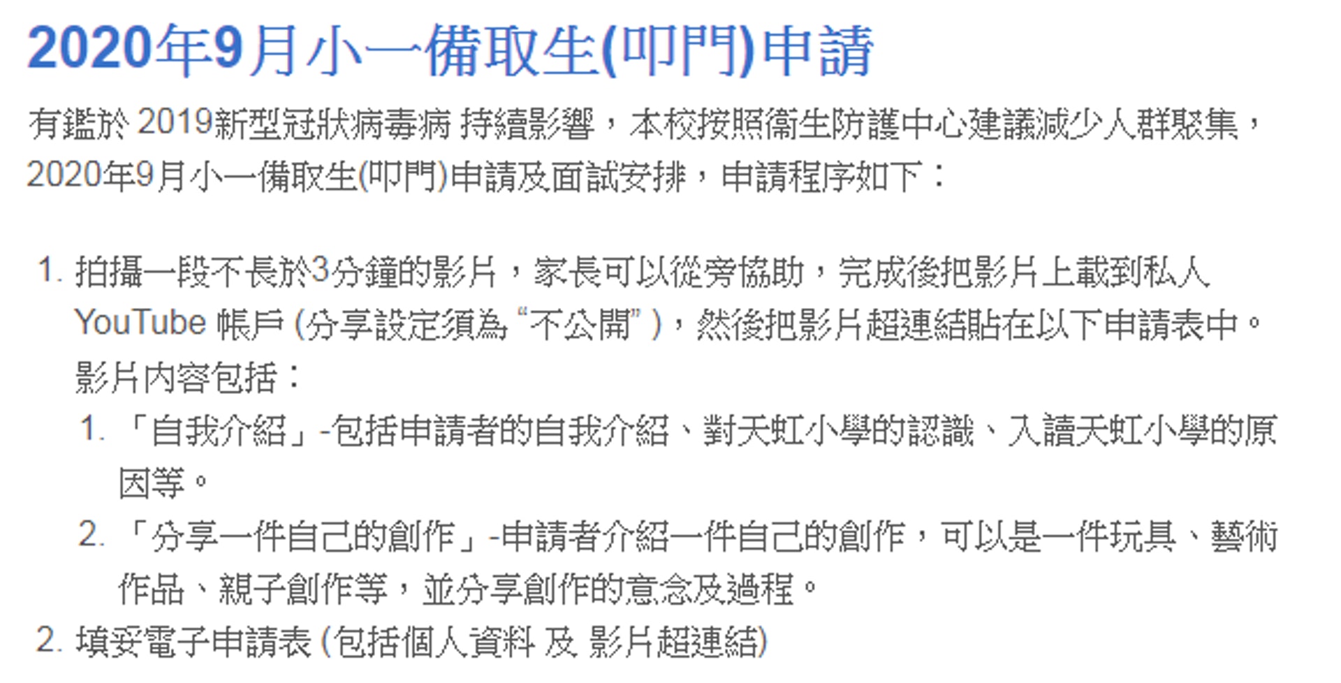 轉載自:《香港01》有學校叩門面試改為拍片 校長:不要太多剪接特效