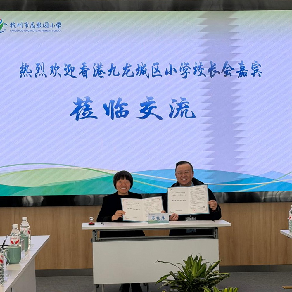 我於 2025 年 11 月 27 日(四)前往杭州巿濱江區,代表學校與「杭州市高教园小学」正式結為姊妹學校。這是繼過往的結盟後,本校與內地結盟的第三間姊妹學校。該校是一所於 2023 年 9 月成立的新學校,建築面積達 30,000 多平方米,校園設施先進。